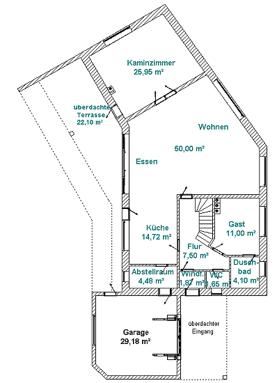 überdachte Terrasse (50%): |